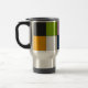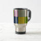 Uma caneca de viagem de aço inoxidável com um design geométrico moderno em cores vibrantes. Apresentando tons de preto, verde, rosa, laranja, cinza e azul, esta caneca artística combina funcionalidade com estilo. Perfeita para amantes de café, comutadores ou qualquer pessoa que goste de carregar suas bebidas em um acessório criativo.