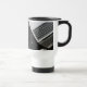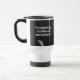 Uma caneca de viagem profissional de classe mundial com um design elegante de mesa de escritório e a citação "Alimentado por Café & Ambição". Perfeita para quem vai ao escritório, empreendedores e trabalhadores esforçados.
