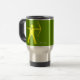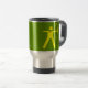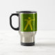 Derrame a caneca de viagem do prooof com o gráfico do tiro ao arco, amarelo no verde