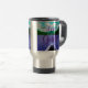 Esta caneca de viagem do café ou do chá caracteriza uma fotografia de uma canoa em um lago em Montana com as palavras "deixou o amor seja seu guia!"