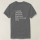 A camiseta Podcast de loop duplo com uma lista Helvetica de termos de impressão digital. Loops, Whorls e Arches são os padrões de Nível 1. Os recursos de Final, Bifurcações e Pontos são os de Nível 2.