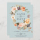 Esta rústica casa-da-terra salva o cartão do anúncio de data é perfeito para um casamento outono. O elegante design de tons de terra apresenta flores de aquarela rústicas em terracota, cobre, laranja queimado, pêssego, rosa esbranquiçado e branco creme com estilo vintage boho.