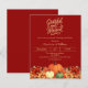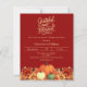 Um terracota, fundo cor de laranja queimado. Decorado com abóboras e flores laranja e amarelas. Personalize e adicione os detalhes da festa. Script de texto: Grateful e abençoado. 1 folha = 1 convite impresso de borda a borda.