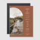 Este belo cartão magnético Save the Date apresenta uma elegante caligrafia e uma simples fonte de tipografia sans serif com uma fotografia em forma de arco num fundo de terracota para um olhar minimalista e moderno limpo, que é uma bela forma de informar sobre o seu próximo casamento. Anuncie à sua família e amigos que vai casar com esta salva o cartão magnético de data e adicione um toque pessoal com belas fotografias de si e da sua próxima metade. A simplicidade desta design adiciona um toque de elegância ao seu casamento. Funciona bem com muitos temas de casamento e definitivamente um excelente extra para o seu casamento. Simplesmente personalize os nomes e o texto em alguns passos fáceis e personalize o cartão magnético com sua foto do casal feliz. Nota: A elegante caligrafia dos termos "Salvar a data" e "convite formal para seguir", bem como as linhas e outros trabalho de arte gráficos e elementos não podem ser editados, apagados ou movidos. Eles estão consertados.