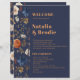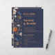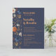 Esta é uma adorável design de aquarela pintada com uma fonte moderna e um tema de humor escuro. Uma versão escura e melodia de um tema francês country. Edite facilmente a modelo para se adequar ao seu evento de casamento. Terracotta Blue Country Wedding Program.