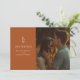 Terracotta Boho Monograma Salve a data Esta design apresenta sua foto favorita e monograma do casal.