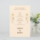 Elevate your wedding tablescape with this elegant pampas-themed menu card. Features starters, mains, and dessert in a clean layout with soft earthy tones. Ideal for rustic or outdoor wedding receptions.