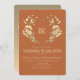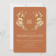 Simples, elegante, vintage terracotta e convite de casamento dourado com monograma da crista botânica com iniciais da noiva e do noivo.