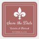 Casamento elegante e simples Guarde os adesivos de data que apresentam uma pulga de lista contra um fundo de terracota. Esta design é uma escolha única para anunciar um casamento moderno. Fácil de personalizar com seus detalhes de casamento. Clique em "Personalizar" para encontrar mais opções de personalização.