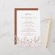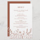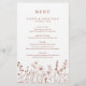 Adicione charme às suas mesas de recepção com este cartão de cardápio de flores silvestres. Apresentando delicados florais de outono e um layout limpo, é perfeito para casamentos rústicos, ao ar livre ou em celeiro. Personalize com sua comida e beba detalhes para se adequar ao seu grande dia.