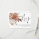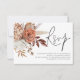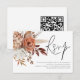 Boho Rust Terracotta Florals Script QR Code Wedding RSVP fazer conveniente para seus convidados responderem digitalizando seu código QR levando à sua página de resposta do site de casamento. O RSVP está em um script na moda e personaliza facilmente o resto das palavras para você e substitui o código QR de amostra no verso pelo seu simplesmente mudando o URL de amostra para o do seu próprio site.
