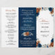 Elegante azul-Marinho, Terracotta, Teatro floral da Terra Laranja triplo programa de casamento com buquê elegante de azul-Marinho, rosas de cor Terracotta e folhas verdes de eucalipto. Entre em contato comigo para obter ajuda sobre a personalização ou se você precisar de outro produto com este design.