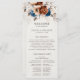 Elegante azul-Marinho, Terracotta, programa de casamento do tema floral da Terra Laranja com buquê elegante de azul-Marinho, rosas de cor Terracotta e folhas de eucalipto. Entre em contato comigo para obter ajuda sobre a personalização ou se você precisar de outro produto com este design.