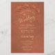Estes programas de casamento são elegantes e saborosos, enquanto ainda são favoráveis ao orçamento. A mão pintada com design de aquarela apresenta um grampo de folhas e fundos marmoreados em tons de terracota, laranja ferrugem e número queimado. A tipografia apresenta uma caligrafia antiga em script, e há espaço para detalhes sobre a cerimônia, a festa noiva e um obrigado curto para você. Perfeito para o outono ou o outono.