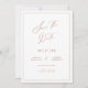 Um mínimo de salvamento do cartão de data, com caligrafia simples e moderna, em uma matiz de terracota, para anunciar seu casamento.