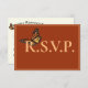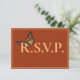 Uma carta de RSVP de Terracotta adorável e simples para complementar seu papel de carta de casamento, seja Trendy Boho, Rustic Chic ou moderno. O RSVP em laranja queimado com uma borda correspondente hospeda uma borboleta monarca perfeita solteiro no rico fundo do terracota. O verso tem a redação tradicional de RSVP junto com um conveniente e econômico código QR e um modelo para o seu site de casamento. Um bando de silhuetas de borboleta de ouro polvilhante delicada decora a parte de trás do cartão de resposta plano. Três maneiras de seus convidados responderem com facilidade ao seu convite de casamento.
