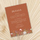 Apresentando o Terracotta Wildlows Enclosure Card, a adição perfeita ao seu convite de casamento. Este cartão fornece todas as informações essenciais para os seus convidados, incluindo detalhes de casamento, opções de alojamento e um link de site para mais informações. A frente do cartão apresenta flores silvestres de aquarela, papoilas, ervas e margaridas em um arranjo semelhante a prados. O Cartão de Alojamento de Detalhes de Casamento de Terracotta Wildflower é essencial para a sua papelaria de casamento, fornecendo uma visão geral dos seus planos de casamento. Ele não só ajuda seus convidados a se manter informados, como também adiciona um toque de elegância e coesão ao seu pacote de convites. Certifique-se de que os seus convidados tenham todas as informações necessárias com o nosso Cartão de Alojamento de Detalhes de Casamento Taupe Wildflower. Peça o seu hoje e crie uma experiência perfeita e memorável para seus convidados. Encontre itens correspondentes na Coleção de Casamento de Prados de Terracotta Wildflower.