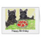 Eu criei este cartão de aniversário bonito usando meus trabalhos de arte diminutos do watercolour de dois scotties bonitos com biscoitos. Podem ser personalizados com seu próprio texto. Nao disponível nas lojas. Olhe por favor meus outros artigos etc. do scottie.