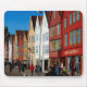 As casas de madeira bonitos, curvadas de Bryggen em Bergen (Noruega) capturaram em uma fotografia colorida. Nas lojas e nos apartamentos ocupados completos passados do comerciante, vibrando agora com bares, restaurantes e vida noturno. Parte da herança do UNESCO. Este produto é inteiramente customizável.