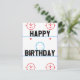 É um cartão de aniversário de hóquei com um teste nas costas.