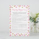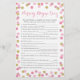 Nosso jogo de teste de rima de berçário de chá de fraldas, cor-de-rosa e dourado, tem 15 frases de rima de berçário com palavras faltando. Peça aos hóspedes que completem as rimas e a quem tiver as vitórias mais corretas. RESPOSTA CHAVE: 1)Fluta 2)Cesta 3)Lã 4)Suíno 5)Muffin Man 6)Clock 7)Filas 8)Pail of water 9)Gordura 10)Ovelha 11)Camundongos 12)Coalhada e soro 13)Jardim 14)Masculinos 15)Esposa do agricultor