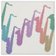 Saxofones do arco-íris no tecido branco. Saxofones do arco-íris que dançam em um teste padrão de ziguezague contra o branco ou a sua escolha da cor do fundo. Excelente para projetar para o músico ou o melómano. A cor do fundo pode ser mudada para combinar seu decoração ou evento temático da música.