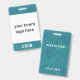 Personalize este simples crachá moderno de funcionarios da equipe de eventos voluntários com o seu logotipo. Se o seu logótipo for quadrado, preencherá inteiramente o espaço branco. Se o seu logotipo não estiver quadrado, aparecerá em um fundo teal. A parte traseira do crachá pode ser personalizada com o nome do evento e a data ou ano, ou você pode deletar ambos para ter uma textura de pintura completa de volta. Este crachá de funcionarios de tripulações minimalista é ideal para eventos especiais, festivais, concertos e convenções.
