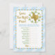 Um bonito jogo azul e dourado do Texas diz "Adivinha o preço certo para os chás de fraldas de menino". Com uma bela borda de pontos.