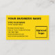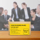 Cartão de visita que você pode personalizar para seus clientes ou clientes para encontrar facilmente seu endereço comercial e informações de contato. As cores e o estilo design são textos pretos em fundo amarelo e textos alinhados à esquerda. Para personalizar este cartão de visita, carregue o logotipo da sua empresa, digite seu nome, seu nome, seu título, endereço, número de telefone, e-mail e site ou a página de mídia social da sua empresa. Após carregar os textos de logotipo e digitação, verifique a aparência nos lados frontal e traseiro. Se a aparência lhe agrada, você pode colocar seu pedido agora. Se você precisar redimensionar e mover o logotipo e os textos para o ajustado neste cartão de visita, mude a ferramenta design. Você também pode fazer outras alterações na ferramenta design de acordo com a aparência deste cartão de visita, que você prefere, como alterar a cor do fundo, a cor da fonte e o estilo da fonte.