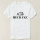 Esta camiseta diz "Mecânica Automática" na frente. Mas o "T" é formado por duas chaves e o "O" é um pneu. O "I" em mecânico também é uma chave inglesa. Você pode comprar esta design em qualquer outra cor de t-shirt que funcione com texto preto, e em qualquer outro item de vestuário oferecido. A mecânica feminina também pode comprar disso. Eu também tenho esta mesma design em uma camiseta preta com texto branco para aqueles que querem roupas mais escuras. Desenhado por Sheila Cicchi, Brownielocks.com. Todos os Direitos Reservados.