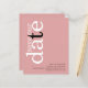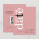 Um valor para o alternativo do ORÇAMENTO em tamanho menor de 4,5 x 5,6" de semirbrilho de 110 lbs, que é de espessura semelhante a um cartão postal (no entanto, não é adequado para uso como cartão postal). POR FAVOR, OBSERVE QUE HÁ UM convite por folha. Texto De Código QR Cor-De-Rosa Rosa De Dusty De Orçamento Salva A Data. Adicione seu código QR ao seu site de casamento no verso substituindo o código QR na amostra. Você pode criar códigos QR gratuitamente on-line. Basta pesquisar "Criador de código QR" e muitas opções surgem para criar gratuitamente. Um na moda tipográfico moderno para convidar sua família e amigos para salvar seu encontro, com a organização Save Our Date em grande tipografia rotacionada e para o lado esquerdo no topo em branco, com uma letra preta "t" sobre um fundo de cor-de-rosa-rosa pálido e empoeirado. Personalize facilmente o resto do texto.
