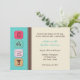 Convite para chá de fraldas com a palavra "Bebê" em blocos de letras de estilo retrô em fundo de bolinhas turquesa com borda de aparência castanha e costurada. O convite é adequado para menina ou garoto. Os convites são fáceis de personalizar e são concluídos com envelopes e sua escolha de papel.