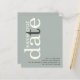 Um valor para o alternativo do ORÇAMENTO em tamanho menor de 4,5 x 5,6" de semirbrilho de 110 lbs, que é de espessura semelhante a um cartão postal (no entanto, não é adequado para uso como cartão postal). POR FAVOR, OBSERVE QUE HÁ UM convite por folha. Texto de Código QR de Imerícia de Ivisório Minimalista Salve a Data. Um design tipográfico moderno em tons naturais de ócio para convidar sua família e amigos para salvar sua data, com o Save Our Date em grande tipografia rotacionada e para o lado esquerdo no topo do marfim, com uma cinza "t" em um fundo de sábio verde-claro. Personalize facilmente o resto do texto. Adicione seu código QR ao seu site de casamento no verso substituindo o código QR na amostra. Você pode criar códigos QR gratuitamente on-line. Basta pesquisar "Criador de código QR" e muitas opções surgem para criar gratuitamente.