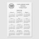 Envie a seus clientes um cartão magnético de calendário para 2022 personalizado com seu logotipo, nome da empresa e informações de contato comercial em texto preto em um fundo branco. Adicione seu logotipo, nome da empresa e texto personalizado (site, número de telefone, endereço, slogan ou outra mensagem) na barra lateral. Seu logotipo pode ser qualquer forma ou cor. Inclui um envelope para fácil envio (ou obtê-lo sem um na barra lateral). Para alterar a cor de fundo, toque em "Clique para personalizar mais" e adicione uma cor de fundo na barra lateral. Clique em "Concluído" e em "Adicionar ao carrinho" para comprar o item personalizado. Copyright © Claire E. Skinner. Todos os direitos reservados.