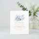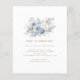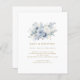 Bolsa Azul de Orçamento Dourado Script QR Code Convite de Casamento. Um tamanho de 4,5 x 5,6 pol de semivrofe de 110 lb com preço orçamentário, semelhante em espessura a um cartão postal. Há um por folha. Moderno e minimalista com essa natureza elegante inspiraram design. Com um buquê azul e branco pálido acima da tipografia simplista e totalmente editável. Adicione seu código QR ao seu site de casamento no verso para que seus convidados possam RSVP e ver todos os detalhes on-line sem a necessidade de gabinetes separados. As cores de texto e de fundo podem ser alteradas se você quiser se adequar melhor ao seu tema de casamento através da opção personalizar mais.