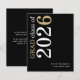 Um valor para o alternativo do ORÇAMENTO em tamanho menor de 4,5 x 5,6" de semirbrilho de 110 lbs, que é de espessura semelhante a um cartão postal (no entanto, não é adequado para uso como cartão postal). POR FAVOR, NOTE que existe UM por folha. Texto Dourado do Orçamento 2025 Anúncio de Graduação Preta. Um na moda tipográfico moderno para anunciar a notícia do seu formando, com a na moda grande tipografia rotacionada e à esquerda no topo, em branco e ouro, sobre um fundo preto clássico. Personalize facilmente o resto do texto, incluindo a sua mensagem no verso