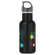 Texto e flores Meninas chamam garrafa de água de v