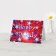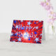 Um fogo de artifício explodindo num chá de estrelas azuis e brancas deslumbrantes contra um céu vermelho e azul. Cartão de saudação com um design personalizável vermelho, azul e branco para você personalizar com seu próprio texto, imagens e ideias. O texto pode ser facilmente alterado usando o modelo fornecido ou clique no botão 'Personalizar o texto' para fazer outras alterações. Criado com fotografias originais e técnicas digitais por Jess Perry.