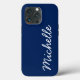 Capa de telefone protetora azul sólida com nome cursivo branco, monograma ou outro texto personalizado. As cores de fundo e texto são personalizáveis! Opções: Case-Mate Mal Há Case-Mate Duro