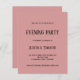 O Texto Preto do Orçamento, Festa Rosa Dusta à Noite, Convide. 100% personalizável. Um design tipográfico moderno em um cartão de ponto-e-vírgula de preço de 4,5 x 5,6 pol (semelhante à espessura de um cartão postal) menor para convidar seus convidados noturnos para o seu casamento. As cores podem ser alteradas se necessário por meio de personalização adicional.