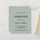 Texto Preto do Orçamento Festa Verde da Noite Convidada. 100% personalizável. Design de tipografia moderna em um menor cartão de ponto de semivida de preço de 4,5 x 5,6" (semelhante à espessura de um cartão postal) para convidar seus convidados noturnos para o seu casamento. As cores podem ser alteradas se necessário por meio de personalização adicional.