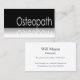 Este Cartão de visita Refletivo Ultra Moderno, Negro e Branco é ideal para um Osteopata. O texto na parte traseira da placa pode ser alterado em fonte, cor, tamanho e localização clicando no botão laranja 'PERSONALIZAR TI'. Obrigados de visita. Se você precisar de uma palavra com esta design, por favor deixe um comentário na minha loja e eu a criarei no mesmo dia e a poste à venda. Obrigados