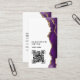 Estes cartões de visitas elegantes apresentam um brilho dourado e um agato roxo. Seu nome aparece na moda tipografia de script manuscrito. Também há espaço para incluir suas informações nas mídias sociais nas costas.