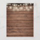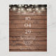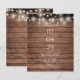 Um design de convite de casamento com orçamento rústico com luzes bonito de cordas e sua data especial e detalhes de casamento definidos em tipografia clássica e chic em um fundo de madeira rústica. Projetado por Thisnotme©