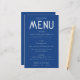 Menu de Casamento Azul do Texto Simples sobre Orçamento. Um preço orçamentário de 5,5" x 8,5", personalize facilmente o texto para seus próprios detalhes, que inclui alternativos para suas opções vegetarianas ou vegetarianas. Você pode mudar se quiser ter qualquer cor da sua escolha para combinar com o seu tema de casamento.