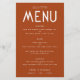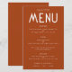 Menu de Casamento Terracotta de Texto Simples sobre Orçamento. Um preço orçamentário de 5,5" x 8,5". Facilmente o texto aos seus próprios detalhes, que inclui alternativos para suas opções vegetarianas ou veganas. Você pode mudar se quiser ter qualquer cor da sua escolha para combinar com o seu tema de casamento.