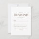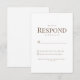 Cartão de Resposta de RSVP de Casamento Branco. Jantar e Dança. Fonte Moderna. Fonte Combinada. Texto Dourado.