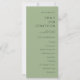 Programa de Casamento Verde de Sábado Simples Imprimível. Disponível digitalmente e impresso. Um simples na moda tipográfico de cor verde para seus programas de casamento, que é totalmente personalizável. O texto, que você pode personalizar facilmente, está alinhado à direita na frente e à esquerda na parte de trás. Você pode alterar as cores do texto e do plano de fundo se quiser combinar o tema da cor do casamento através da opção Editar Mais, assim como de outras opções que você precisar. Se precisar de assistência para a edição deste design, por favor, envie-me uma mensagem.