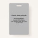 Texto simples design crachá com foto de funcionário que você pode personalizar para você e seus funcionários. As cores e formas de design são textos pretos em fundo de cinza e forma retangular de formato de retrato. Para personalizar este crachá, digite seu nome de empresa ou empresa, endereço, número de telefone, nome do funcionário, título do funcionário, número de ID do funcionário e foto do funcionário de upload. Após digitar textos e carregar fotos, verifique a aparência nos lados frontal e traseiro. Se a aparência lhe agrada, você pode colocar seu pedido agora. Se você precisar redimensionar e mover os textos e a foto para o ajustado neste crachá, troque a ferramenta design. Você também pode fazer outras alterações na ferramenta design de acordo com a aparência que você prefere, como alterar a cor do plano de fundo, a cor da fonte e o estilo da fonte.