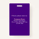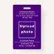 Texto simples design crachá com foto de funcionário que você pode personalizar para você e seus funcionários. As cores e formas de design são textos cor-de-rosa e brancos sobre fundo roxo e forma retangular de formato de retrato. Para personalizar este crachá, digite seu nome de empresa ou empresa, endereço, número de telefone, nome do funcionário, título do funcionário, número de ID do funcionário e foto do funcionário de upload. Após digitar textos e carregar fotos, verifique a aparência nos lados frontal e traseiro. Se a aparência lhe agrada, você pode colocar seu pedido agora. Se você precisar redimensionar e mover os textos e a foto para o ajustado neste crachá, troque a ferramenta design. Você também pode fazer outras alterações na ferramenta design de acordo com a aparência que você prefere, como alterar a cor do plano de fundo, a cor da fonte e o estilo da fonte.